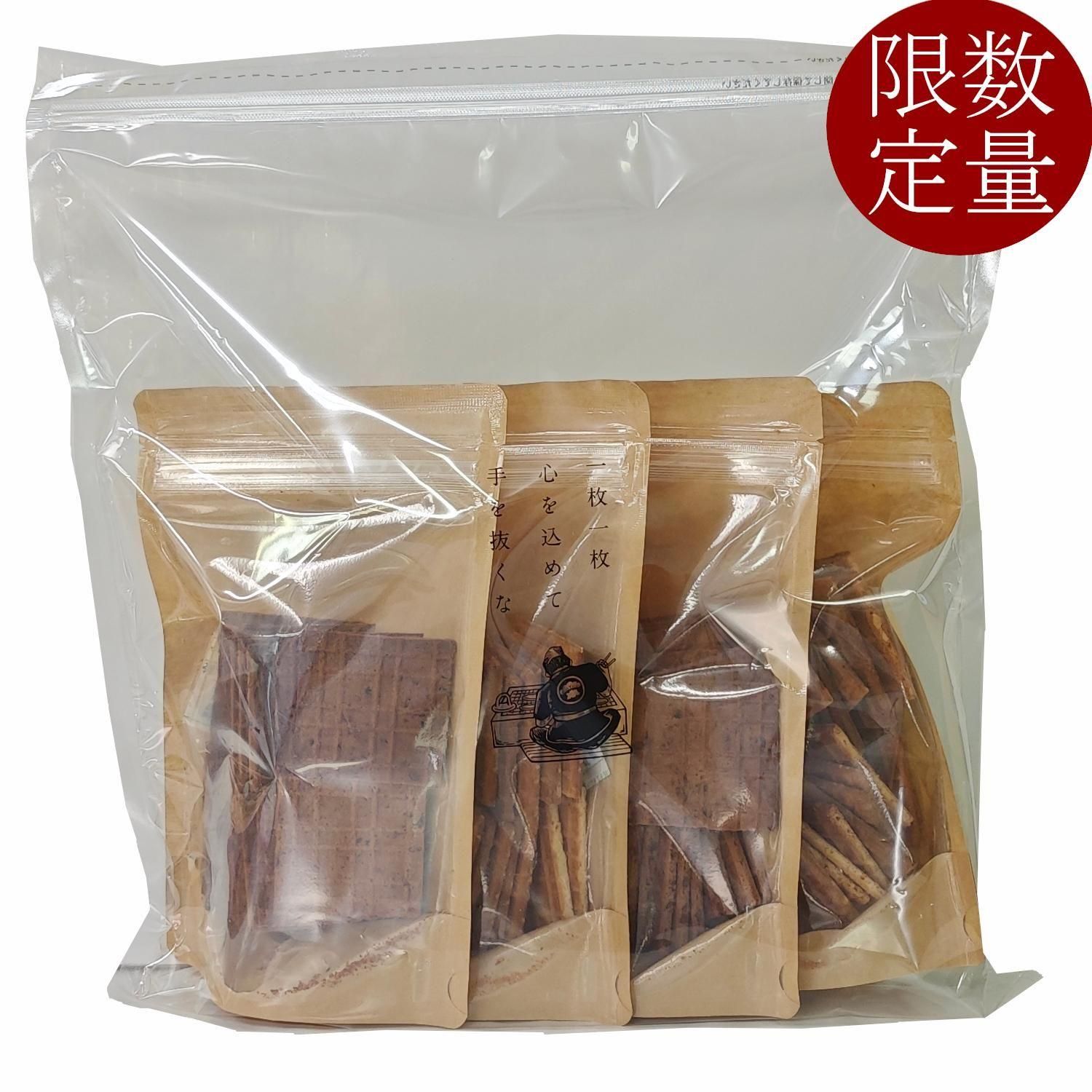 生産過程で商品にならない瓦せんべいを集めたお得な4種セット!賞味期限が短い点や形が不揃いなどありますが味の品質は通常商品と変わりありません