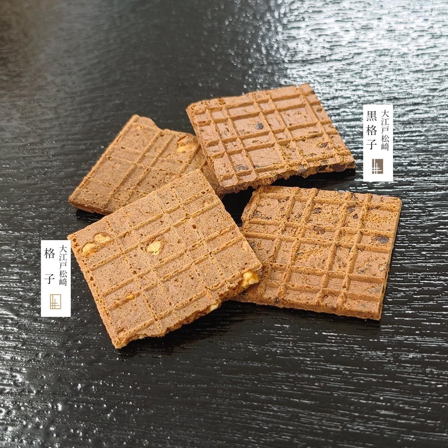 昨年12月のテレビで取り上げられてから品薄が続いております「大江戸松崎 黒格子」と、サクサクとした食感と優しい甘さ落花生の「大江戸松崎 格子」の2種類。